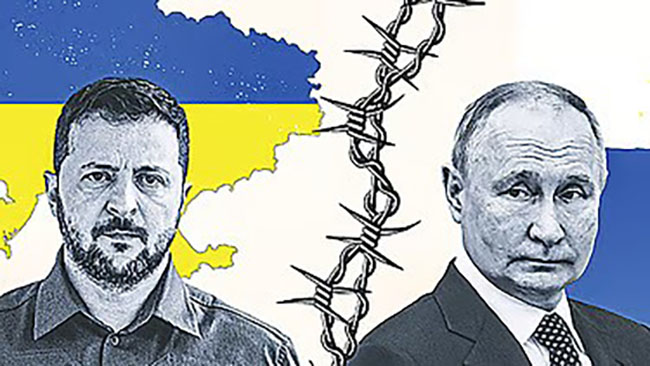 ইউক্রেনের প্রেসিডেন্ট জেলেনস্কি (বাঁয়ে) ও রাশিয়ার প্রেসিডেন্ট পুতিন। ছবি: সংগৃহীত