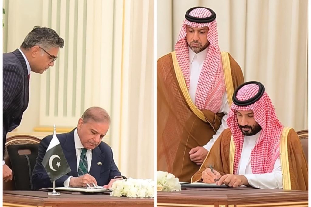 পাকিস্তানের প্রধানমন্ত্রী শাহবাজ শরিফ ও সৌদি আরবের যুবরাজ মোহাম্মদ বিন সালমান বুধবার (১৭ সেপ্টেম্বর) ‘কৌশলগত পারস্পরিক প্রতিরক্ষা চুক্তি’ (এসএমডিএ) স্বাক্ষর করেছেন। রিয়াদে শাহবাজ শরিফকে সৌদি এফ-১৫ যুদ্ধবিমানের অভিবাদন, লালগালিচা সংবর্ধনা এবং পূর্ণ রাজকীয় প্রটোকলের মাধ্যমে স্বাগত জানানো হয়েছিল। চুক্তি স্বাক্ষরের সময়ও তাঁকে বেশ হাস্যোজ্জ্বল দেখা গিয়েছিল।